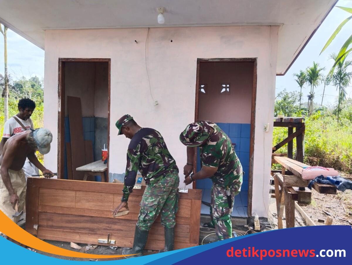 detikposnews.com| Timika – Pembangunan fasilitas Mandi, Cuci, dan Kakus (MCK), yang menjadi salah satu dari beberapa sasaran fisik program TNI Manunggal Membangun Desa (TMMD) Ke-124 Kodim 1710/Mimika, terus berlanjut. Saat ini, Satgas TMMD bersama warga Kampung Iwaka tengah fokus pada tahap pemasangan pintu MCK, Senin (26/05/2025).