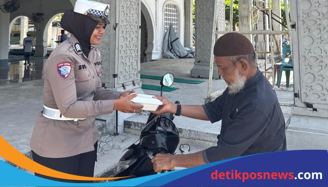 PIDIE JAYA –detikposnews.com- Sebagai bentuk kepedulian dan upaya mempererat hubungan dengan masyarakat, Polwan Polres Pidie Jaya kembali melaksanakan kegiatan sosial bertajuk Jum’at Berkah dengan membagikan 30 kotak nasi kepada warga di sekitar Masjid Al-Ikhlas, Gampong Pangwa, Kecamatan Meureudu, Jumat (18/7/2025) pukul 12.00 WIB.