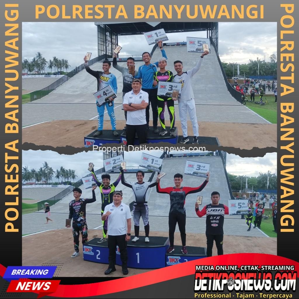 Banyuwangi – Detikposnews.com // Kapolresta Banyuwangi Kombes Pol. Rama Samtama Putra, S.I.K., M.Si., M.H., secara resmi menyerahkan piala kepada para juara dalam ajang Banyuwangi BMX Super Cross 2025 yang digelar di Kecamatan Muncar pada Sabtu, 15 November 2025. Ajang bergengsi bertaraf nasional hingga internasional ini menghadirkan 2 Rounds UCI Kelas 1 dan mempertemukan para atlet terbaik dari Malaysia, Cina, serta Indonesia sebagai tuan rumah.