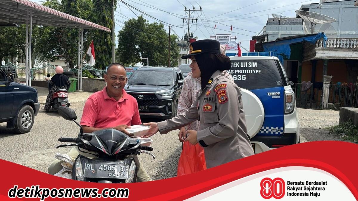 Kegiatan yang dimulai pukul 12.00 WIB tersebut dipimpin langsung oleh Iptu Nina Ervianti bersama personel Polwan lainnya. Sebanyak 40 kotak nasi dibagikan kepada lansia dan orang-orang yang membutuhkan, termasuk para pedagang kecil di sekitar pasar.