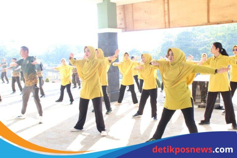 Bengkayang, Kalbar – detikposnews.com | Kodim 1209/Bengkayang menggelar senam bersama yang melibatkan prajurit dan ibu-ibu Persit KCK...