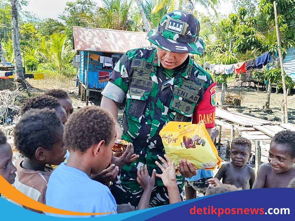 detikposnews.com | Timika – Di sela-sela kesibukan pelaksanaan program TNI Manunggal Membangun Desa (TMMD) Ke-124, Komandan Satuan Tugas (Dansatgas) Letkol Inf M. Slamet Wijaya, S. Sos., M. Han., M.A. menunjukkan kepeduliannya terhadap warga sekitar dengan membagikan cokelat kepada anak-anak di lokasi kegiatan pembangunan, Jumat (16/5/2025).