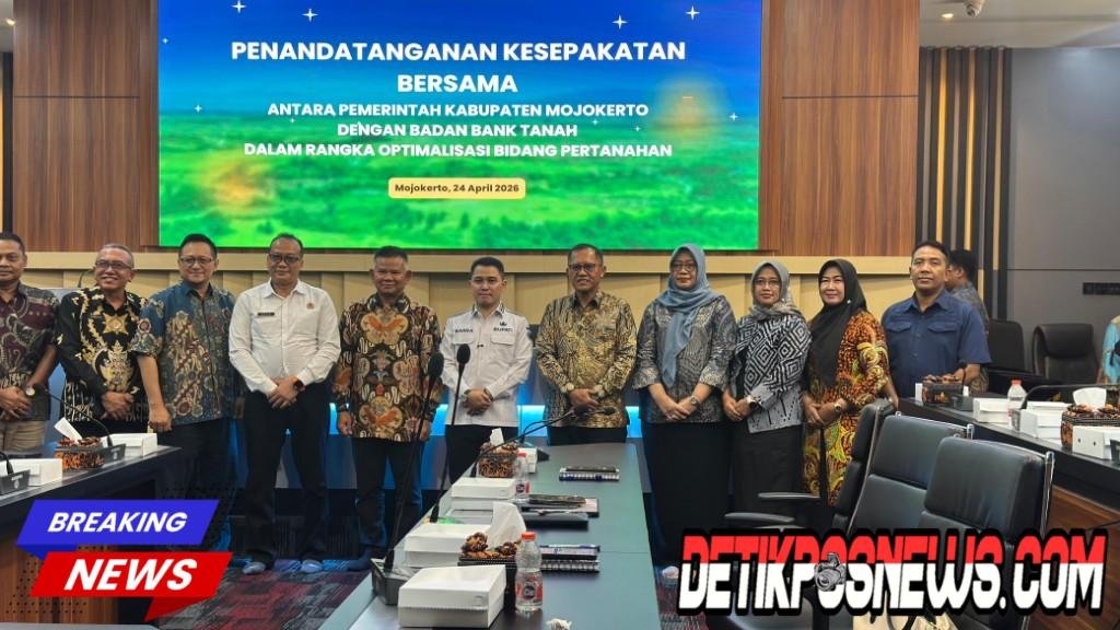 Kabupaten Mojokerto – detikposnews.com // Pemerintah Kabupaten Mojokerto terus berupaya untuk mengoptimalkan pembangunan pada segala bidang. Kali ini, dengan menggandeng Badan Bank Tanah, para jajaran kepemerintahan di bawah naungan Bupati Muhammad Albarraa itu tengah mengusahakan hak pengelolaan atas tanah terlantar yang tersimpan pada Badan Bank Tanah sebagai tanah negara.