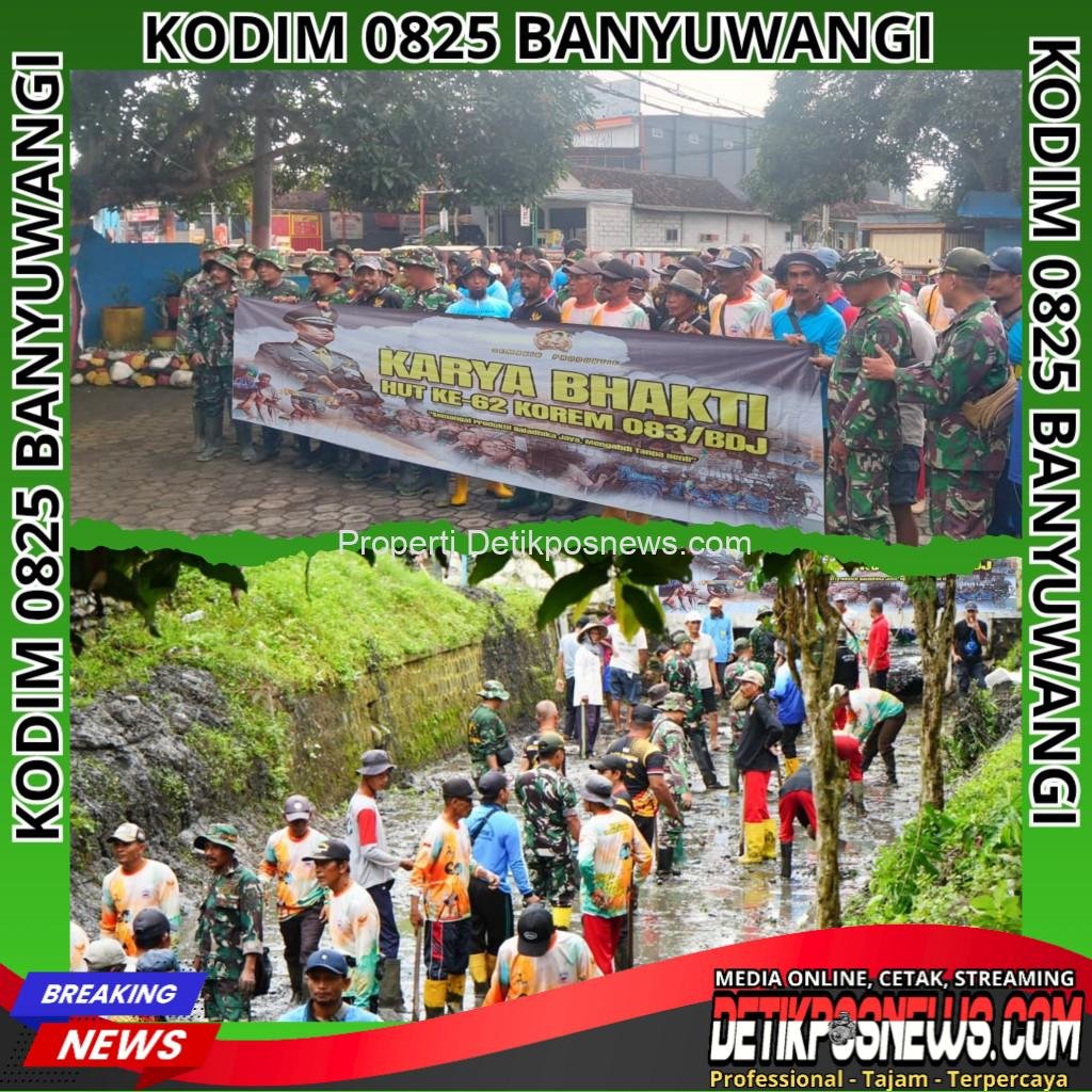 Banyuwangi – Detikposnews.com // Dalam rangka menyambut Hari Ulang Tahun Korem 083/Baladhika Jaya, Kodim 0825 Banyuwangi menggelar kegiatan Karya Bakti dengan fokus pada pembersihan sungai di wilayah Kecamatan Pesanggaran. Kegiatan yang berlangsung pada Jumat (21/11/2025) tersebut dipusatkan di Sungai H. Khusnan, Dusun Krajan, Desa Pesanggaran.