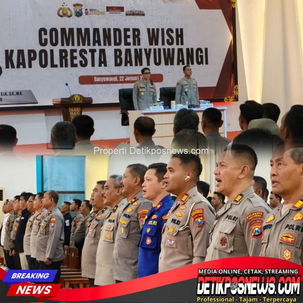 Banyuwangi – Detikposnews.com // Kapolresta Banyuwangi, Kombes Pol. Dr. Rofiq Ripto Himawan, S.I.K., S.H., M.H., memaparkan Commander Wish tahun 2026 dalam sebuah kegiatan internal kepolisian yang berlangsung pada Kamis (22/01/2026). Paparan tersebut menjadi penegasan arah kebijakan dan strategi Polresta Banyuwangi dalam meningkatkan kualitas pelayanan kepada masyarakat sekaligus menjaga stabilitas keamanan dan ketertiban di wilayah Bumi Blambangan.