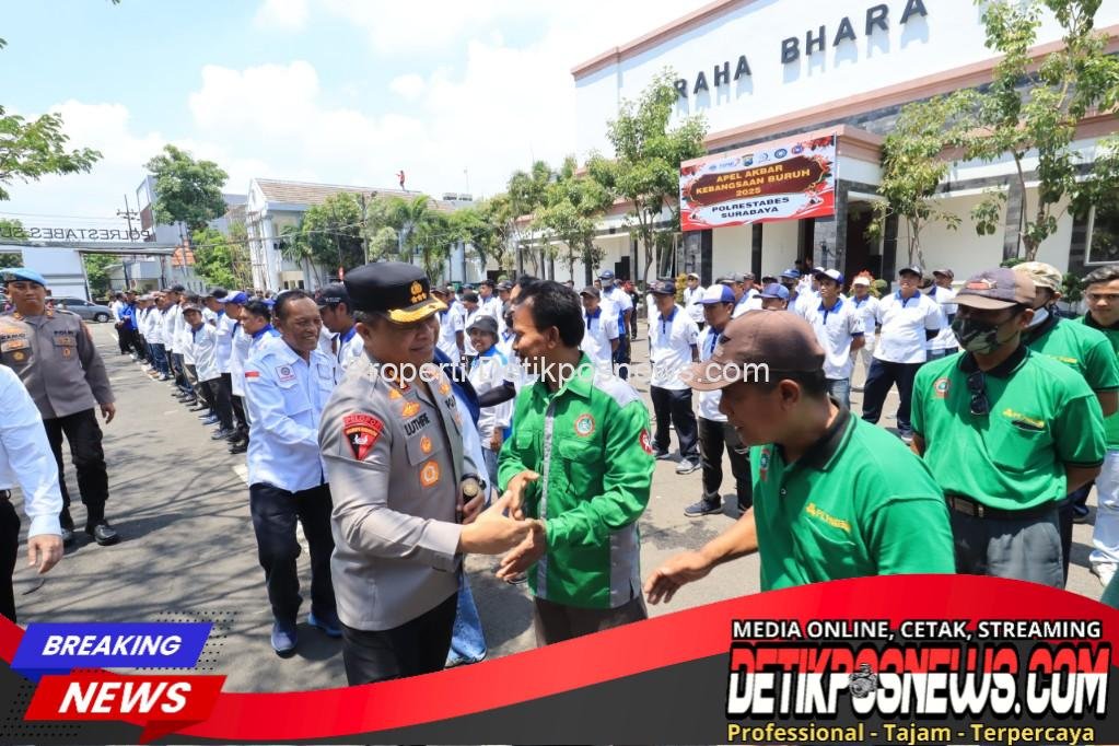 SURABAYA — Detikposnews.com // Kapolrestabes Surabaya, Kombes Pol Luthfi Sulistiawan memimpin Apel Kebangsaan di lapangan A Mapolrestabes Surabaya bersama perwakilan serikat pekerja dari berbagai elemen di Surabaya.