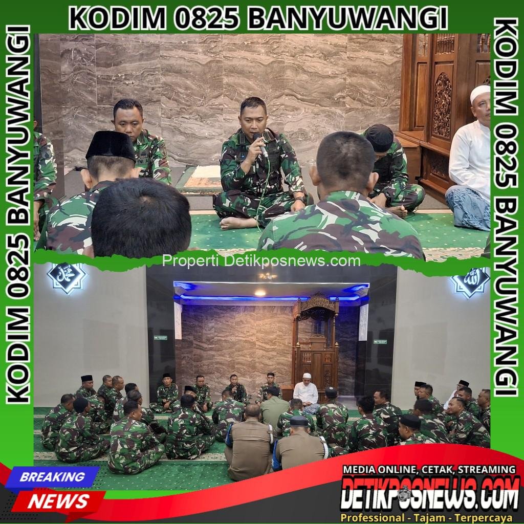 BANYUWANGI — Detikposnews.com // Menutup tahun 2025 dengan penuh kekhidmatan, Komandan Kodim (Dandim) 0825/Banyuwangi Letkol Arm Tryadi Indrawijaya, S.H., M.I.P. bersama seluruh anggota menggelar doa bersama dalam rangka menyambut Tahun Baru 2026. Kegiatan ini berlangsung di Masjid Ahmad Yani Kodim 0825/Banyuwangi, Jalan RA Kartini Nomor 02, Kepatihan, Kabupaten Banyuwangi, Rabu (31/12/2025).