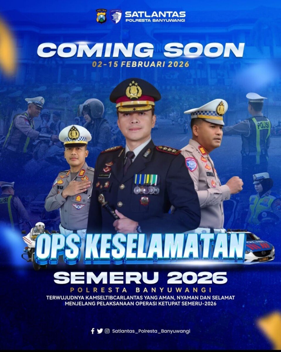 “Melalui Ops Keselamatan Semeru 2026 ini, kami mengajak seluruh masyarakat Banyuwangi untuk lebih disiplin dan tertib berlalu lintas. Mulai dari kelengkapan surat-surat kendaraan, penggunaan perlengkapan keselamatan, hingga mematuhi rambu dan marka jalan,” ujarnya.