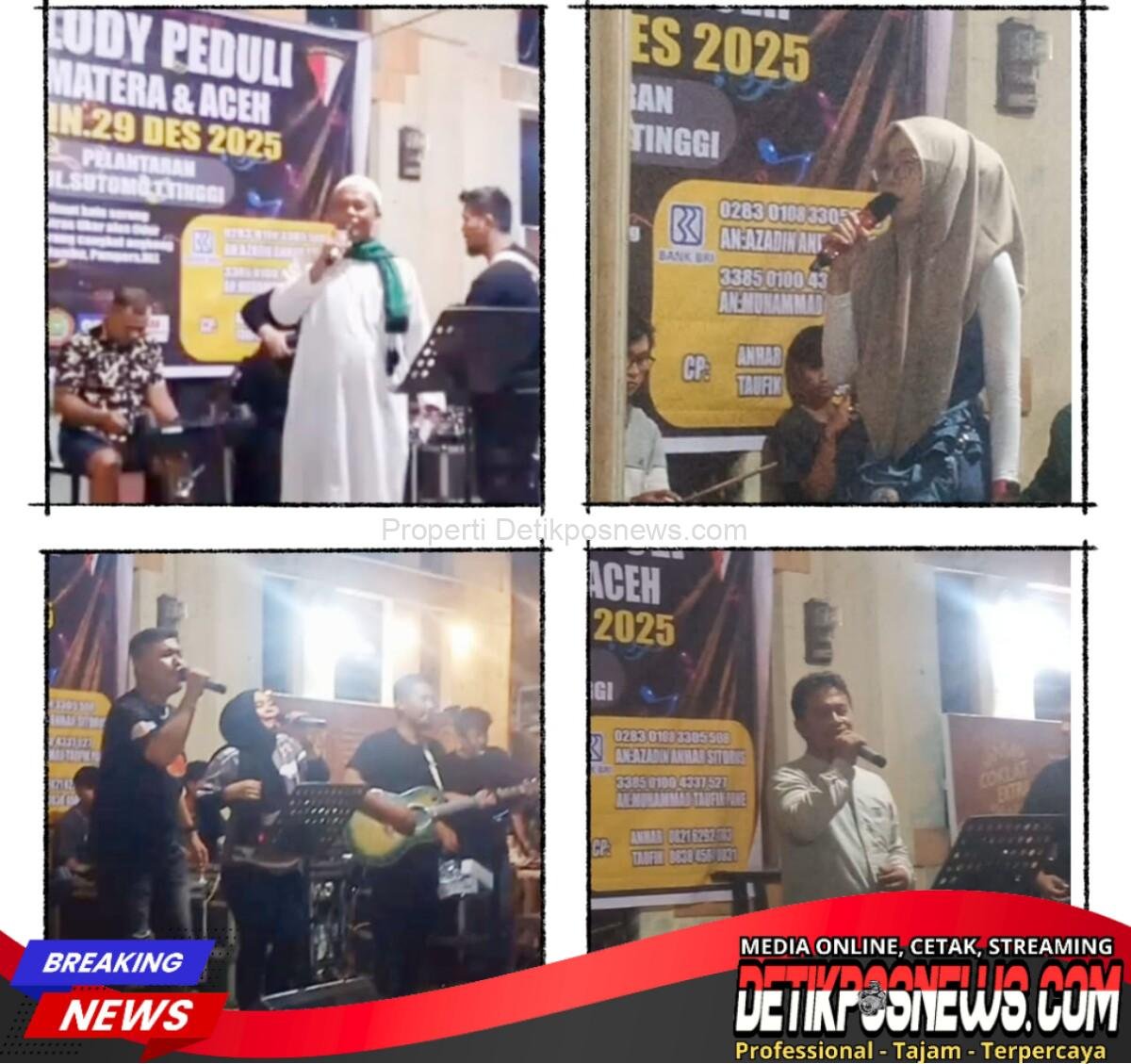 Tebing tinggi – Detikposnews.com // Dalam rangka Aksi Peduli Bencana Aceh Sumatera, DPC Pendawa Kota Tebing Tinggi telah melaksanakan kegiatan yang luar biasa yaitu Konser Amal/ Melodi Peduli di depan Gedung Juang 45 Kota Tebing Tinggi, tadi malam selasa 29 Desember 2025.