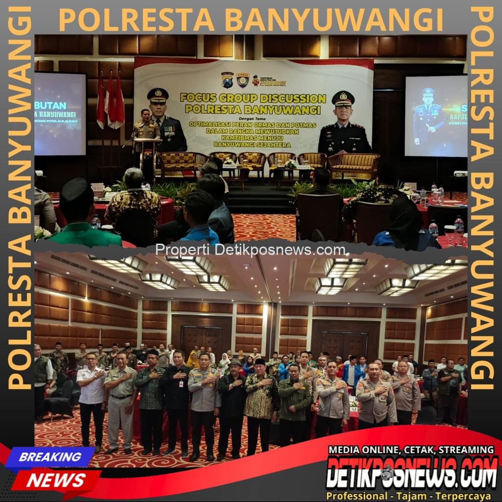BANYUWANGI — Detikposnews.com // Polresta Banyuwangi menggelar Focus Group Discussion (FGD) bertema “Optimalisasi Peran Ormas dan Potmas dalam Mewujudkan Kamtibmas Menuju Banyuwangi Sejahtera”, Rabu (3/12/2025).