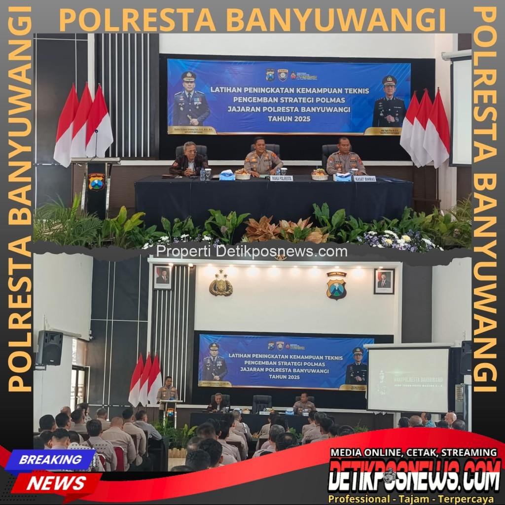 Banyuwangi – Detikposnews.com // Polresta Banyuwangi menggelar pelatihan peningkatan kemampuan teknis bagi para pengemban Strategi Pemolisian Masyarakat (Polmas) atau Polisi RW.