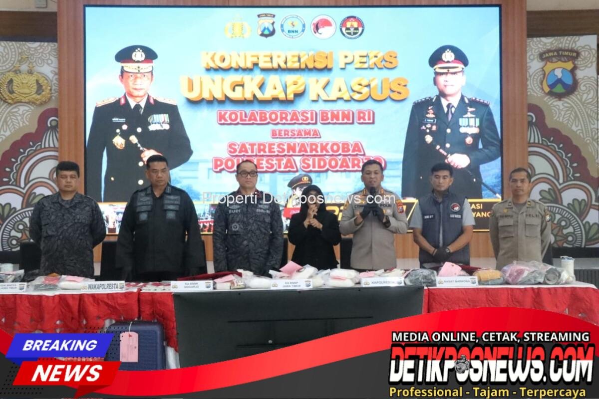 SIDOARJO – Detikposnews.com // Satresnarkoba Polresta Sidoarjo Polda Jatim bersama BNNP Jawa Timur, berhasil mengungkap upaya penyelundupan narkotika jenis sabu seberat 8,2 kilogram dan 10 butir pil ekstasi.