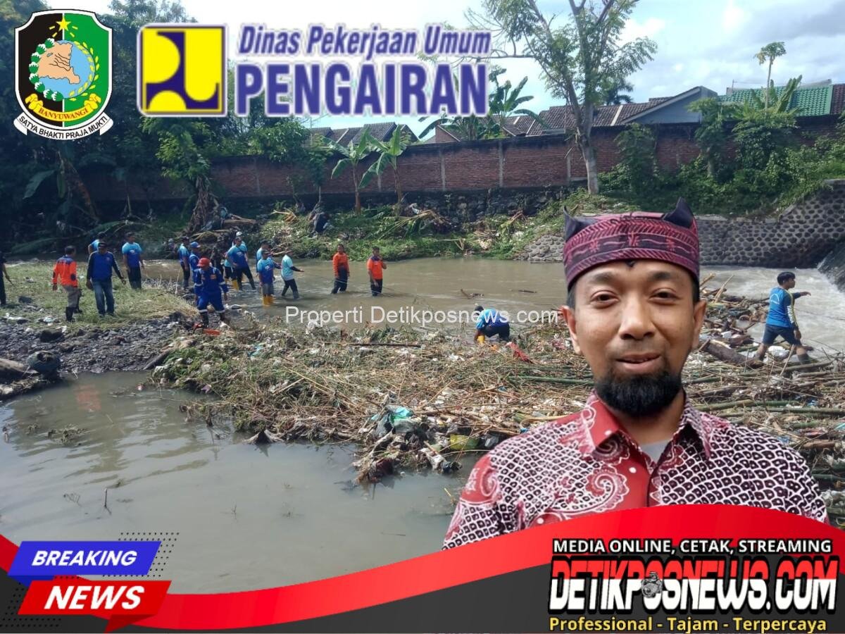 Banyuwangi – Detikposnews.com // Setelah banjir melanda sejumlah titik di wilayah Kabupaten Banyuwangi pada Senin (17/11/2025), Dinas Pekerjaan Umum (PU) Pengairan Kabupaten Banyuwangi bergerak cepat melakukan langkah-langkah penanganan darurat. Salah satunya melalui program padat karya yang difokuskan pada aliran Sungai Bagong di Kelurahan Sobo, Kecamatan Banyuwangi. Rabu (19/11/2025)