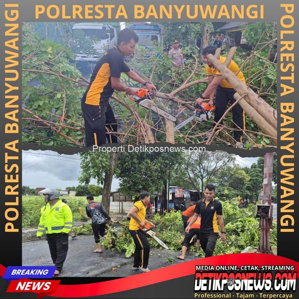 Banyuwangi – Detikposnews.com // Polresta Banyuwangi bergerak cepat melakukan penanganan darurat setelah angin puting beliung menerjang wilayah Banyuwangi dan menyebabkan sejumlah pohon tumbang di beberapa titik, Jumat (14/11/2025).