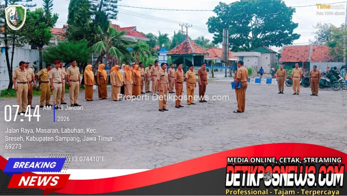 Sampang – Organisasi Perangkat Daerah ( OPD ) Kecamatan Sreseh melaksanakan apel pagi tiap hari Senin, rutinitas kedisiplinan sebagai abdi negara dan tanggung jawab dalam menjalankan tugas sebagai Pegawai Negeri Sipil (PNS). dilingkungan kerja kabupaten Sampang. Apel pagi berlangsung di halaman kantor kecamatan Sreseh, Dusun Masaran, Desa Labuhan, Kecamatan Sreseh, Kabupaten Sampang, Madura, Jawa Timur, Senin (19/01/2026).