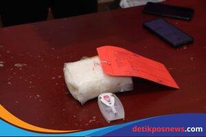 Dari tangan pelaku, petugas mengamankan barang bukti Narkotika Jenis Sabu seberat 1kg yang terbungkus rapi dengan plastik disimpan di gantungan motor
