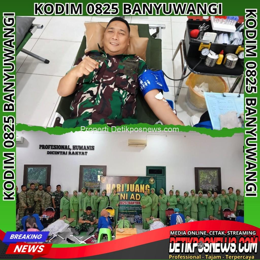 BANYUWANGI — Detikposnews.com // Dalam rangka menyambut Hari Juang TNI AD dan Hari Ulang Tahun Kodam V/Brawijaya, Kodim 0825/Banyuwangi menggelar aksi donor darah bertajuk “TNI AD Manunggal Dengan Rakyat Untuk Indonesia Bersatu, Berdaulat, Sejahtera dan Maju.” Kegiatan kemanusiaan ini berlangsung di Aula Panglima Sudirman, Makodim 0825 Jalan RA Kartini No. 02, Kepatihan, Banyuwangi, Jumat (12/12/2025).